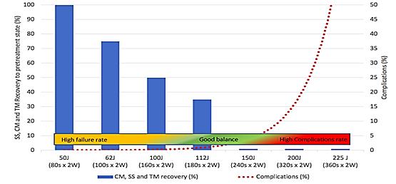 4. Рис 2. Параметры лазерной энергии (стрелкой указаны безопасные параметры). | |
