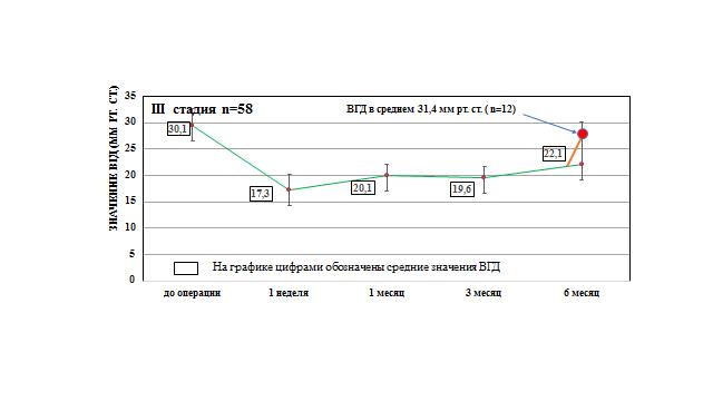 10. Рис 5. Динамика изменения ВГД при III стадии глаукомы. | |
